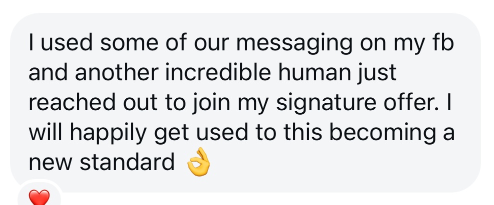 And good fkn messaging is required in EVERY season of business if you want to position yourself as a safe YES to your people, keep their attention for life and make easy breezy sales that don't rely on your live energy.