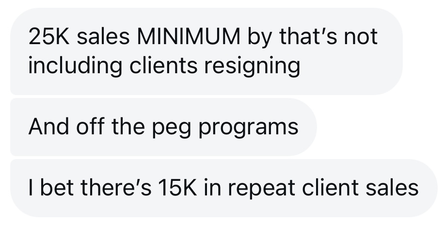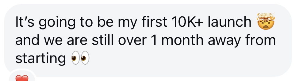 Susan launched at LEAST a dozen offers last month and even she has lost count of the number of free masterclasses she held. Fuelled by at least 6 cups of coffee a day and building funnels until 9pm, the hype she’s creating has her hitting good - but not great - numbers in her programmes.